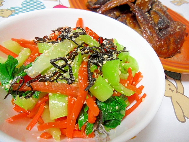 チンゲン菜とにんじんの塩こんぶ白だし和え レシピ 作り方 By ミスチバス 楽天レシピ