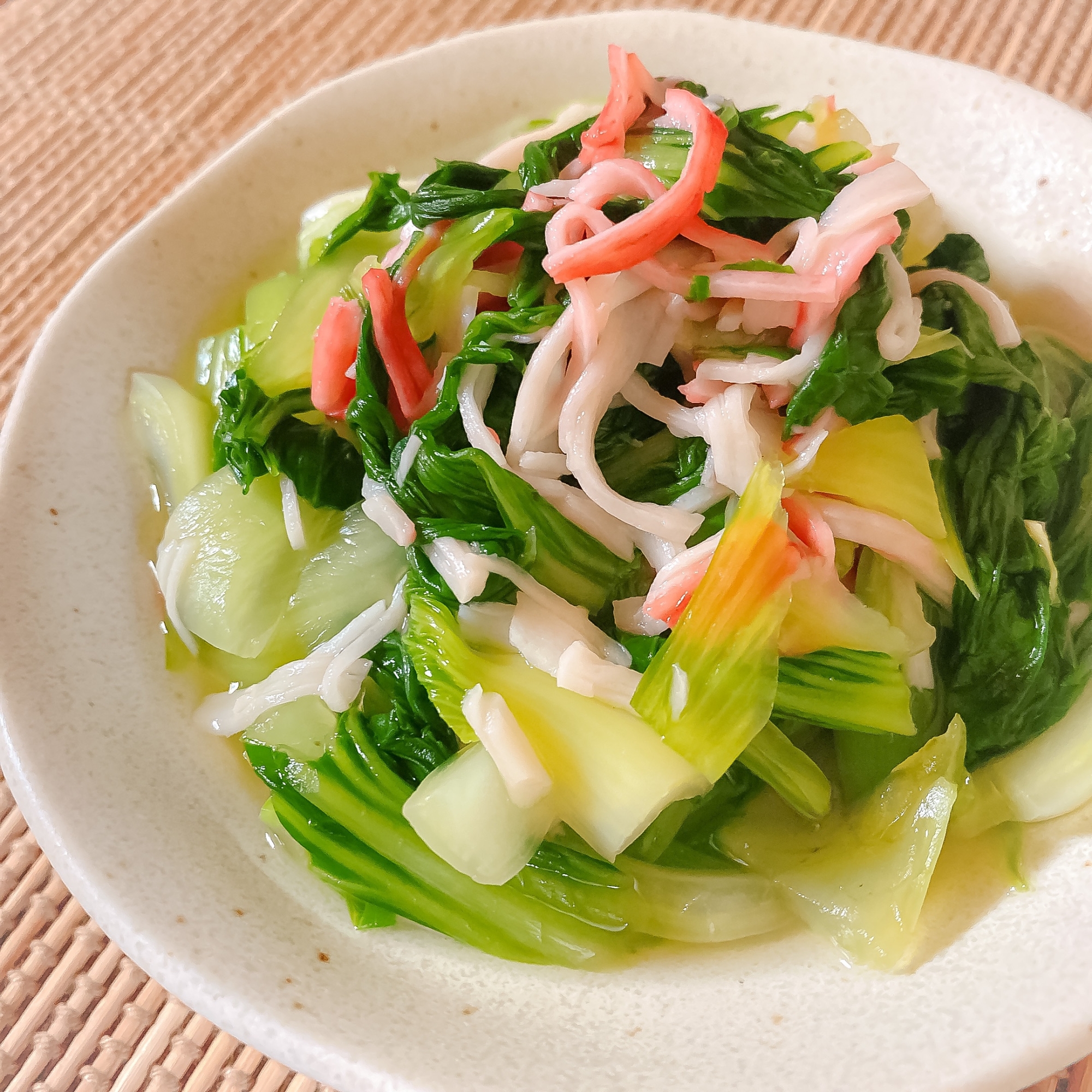 チンゲン菜とカニカマの煮浸し レシピ 作り方 By にゃんぺこ 楽天レシピ